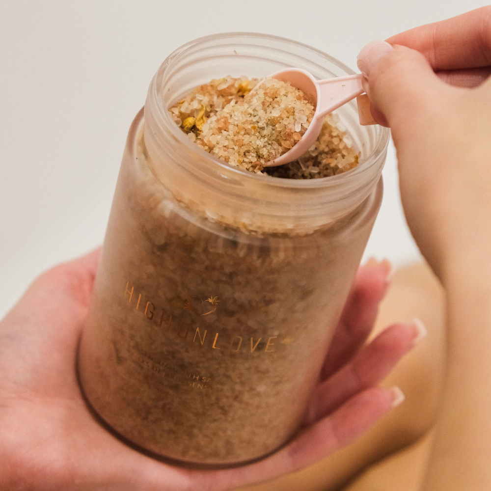 Add 2-3 scoops to warm or hot bath water to enjoy a moment of self-care of a romantic tub for two.