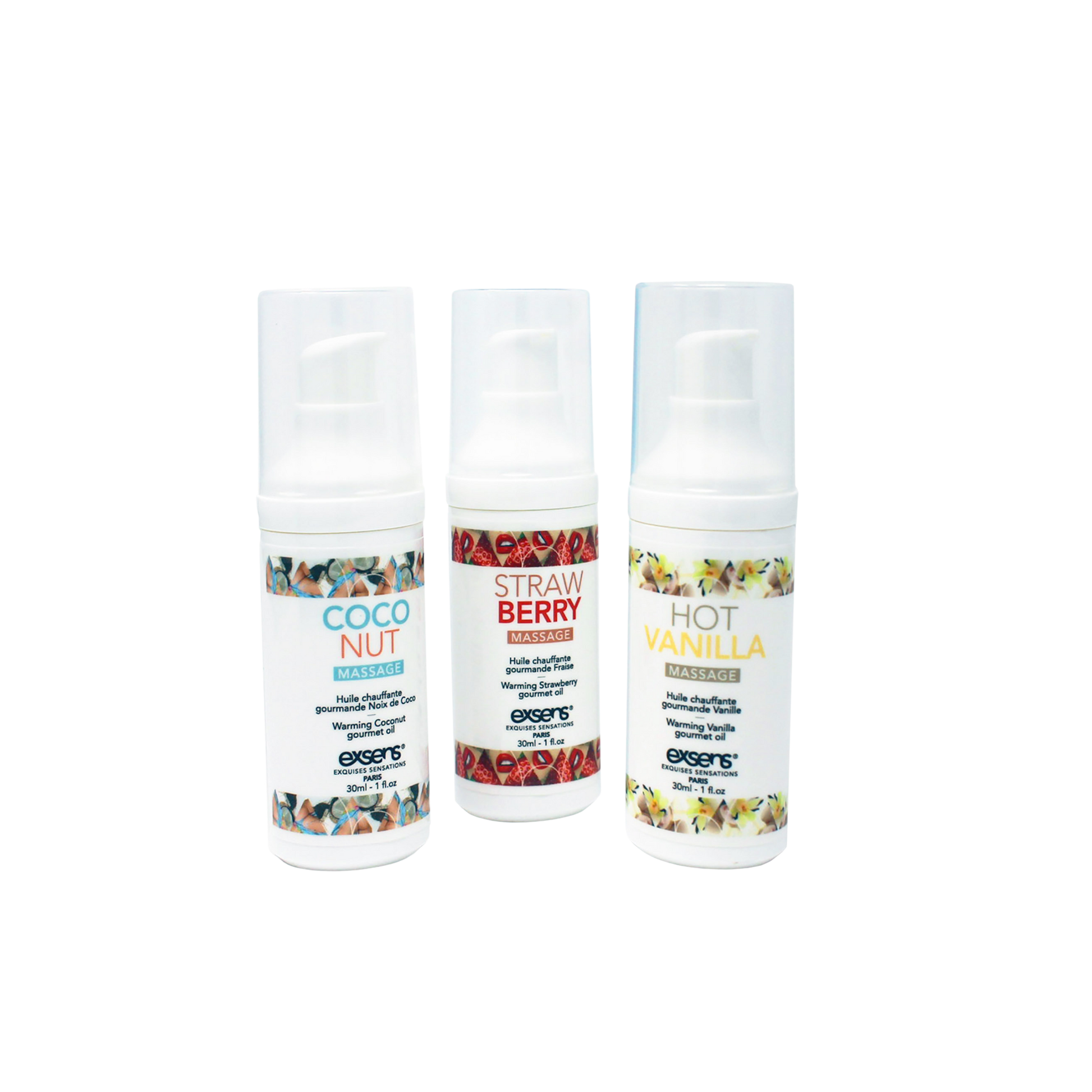 Treat yourself on the go with our Let's Travel! Warming Intimate Massage gel kit. Includes three travel-sized, gourmet-flavored pleasure enhancers (Hot Vanilla, Strawberry, and Coconut) created for intimate foreplay and oral pleasure.
